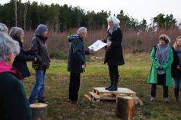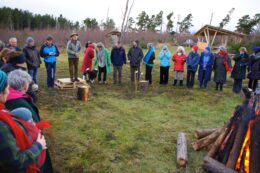 It starts with two major disasters back in 2004 that led to fundamental and ultimately positive changes: a huge gorse fire resulted in the Findhorn Hinterland Group, the precursor of the Findhorn Hinterland Trust (FHT), being set up after a public meeting in Findhorn Village, where plans to plant trees on the burnt area were discussed; and a violent storm created a large area of windblown trees in the middle of Wilkies Wood, which ultimately transformed into the first community-led burial site in Scotland.